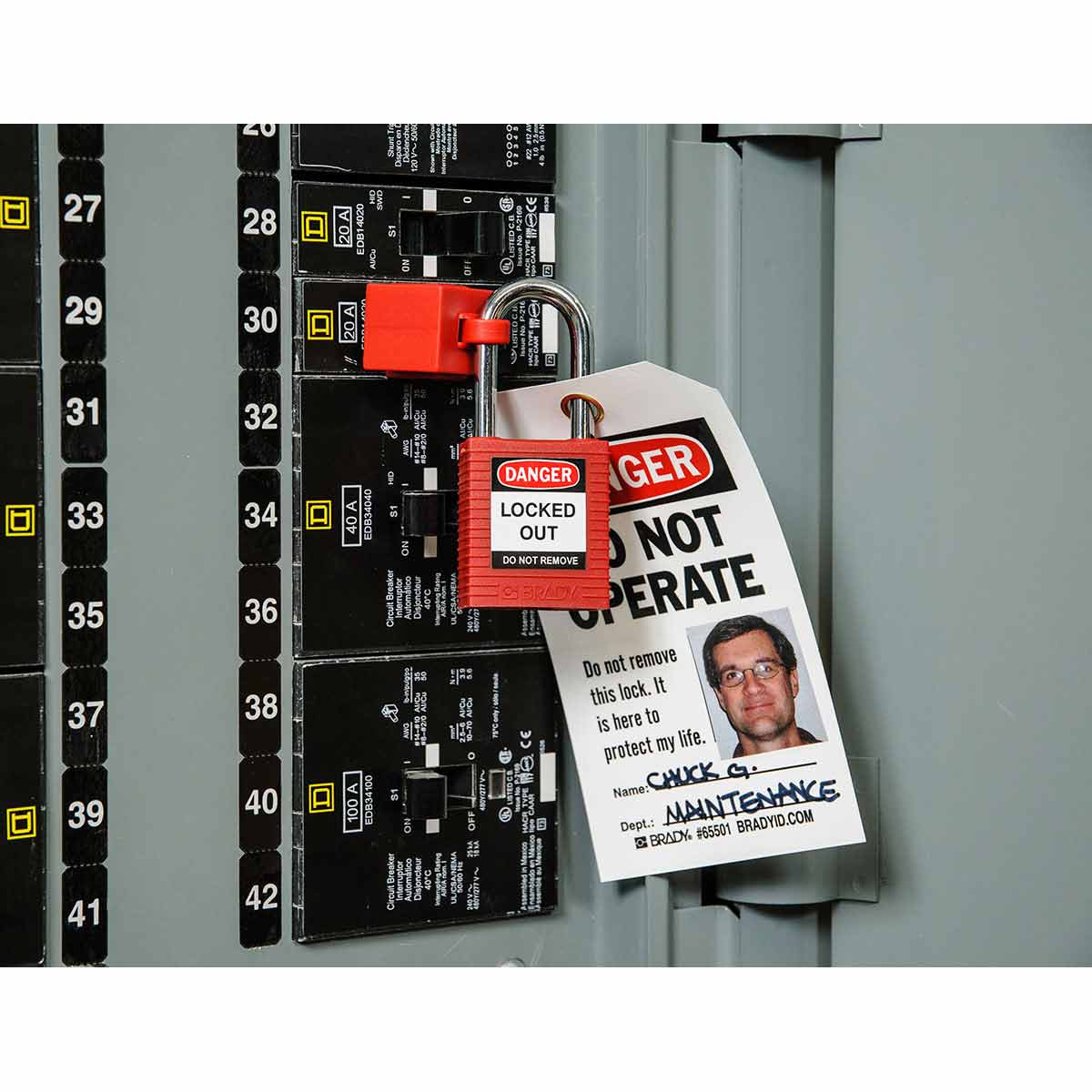 These photo tags can be personalised by writing on special instructions, hazards or warnings. The tag also has an area where the relevant employee photograph can be attached thereby persona;ising the tag to a specific person.